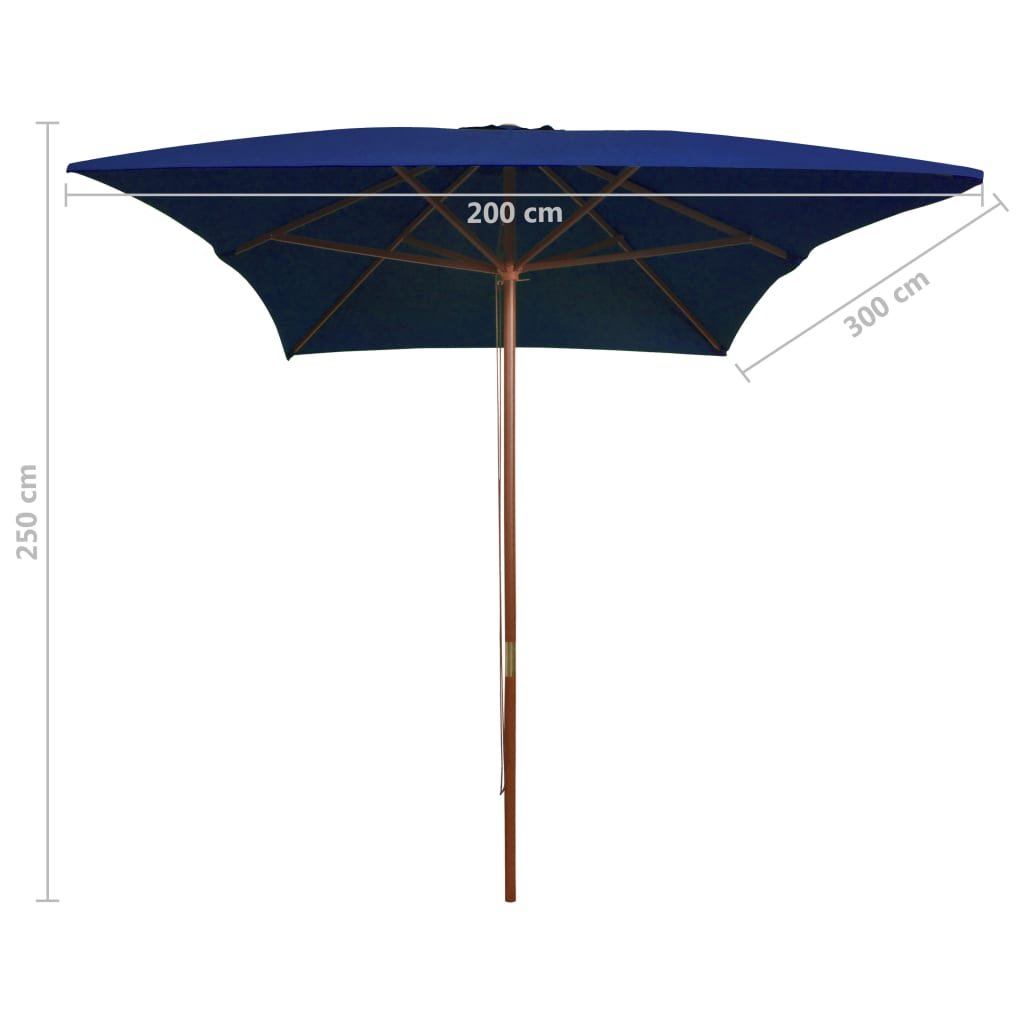 Zahradní slunečník s dřevěnou tyčí modrý 200 x 300 cm 313761