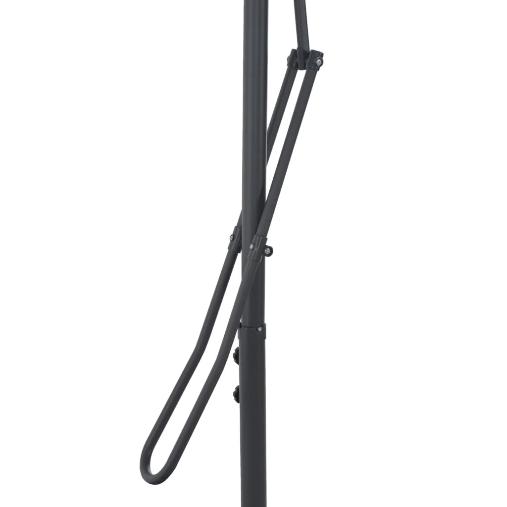 Stříška slunečníku je vyrobená z polyesterové tkaniny, která nepropouští škodlivé UV záření a nevybledne, a poskytne vám optimální ochranu před sluncem. Navíc se snadno čistí. Je vybavený pevnou křížovou základnou pro větší stabilitu. Silná ocelová tyč se 6 odolnými žebry zajišťuje, že se slunečník nehýbe a hodně toho vydrží. Tento jedinečný slunečník se dokáže otáčet o 360 stupňů, takže si úhel stříšky můžete jednoduše nastavit podle polohy slunce.