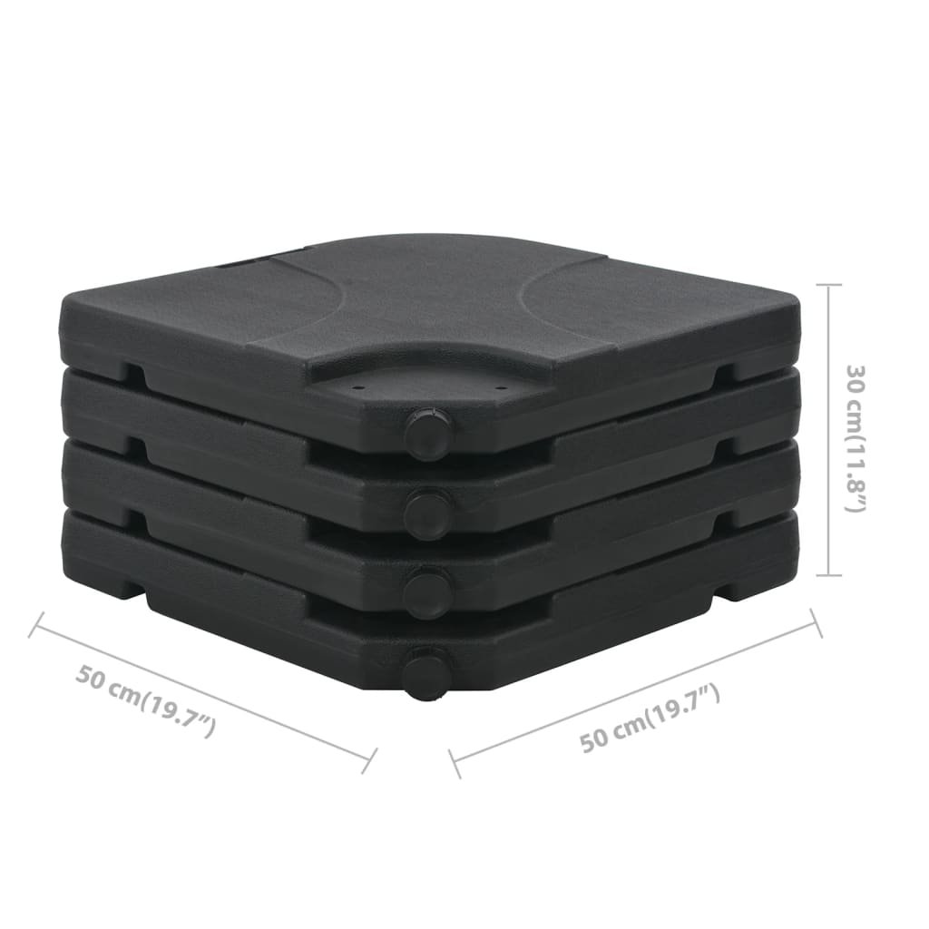 Dodatečný podstavec se skládá ze čtyř samostatných částí a lze jej naplnit 60 litry vody nebo 80 kg písku. Skvěle se hodí pro slunečníky s křížovou základnou. Pokud podstavec vyprázdníte, je velice lehký a dá se tedy snadno přenášet.