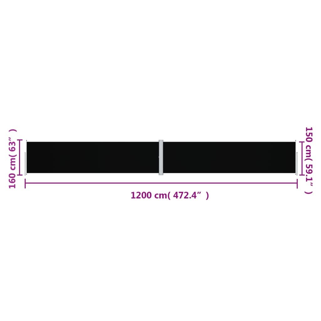 Zatahovací boční markýza černá 160 x 1 200 cm 318066