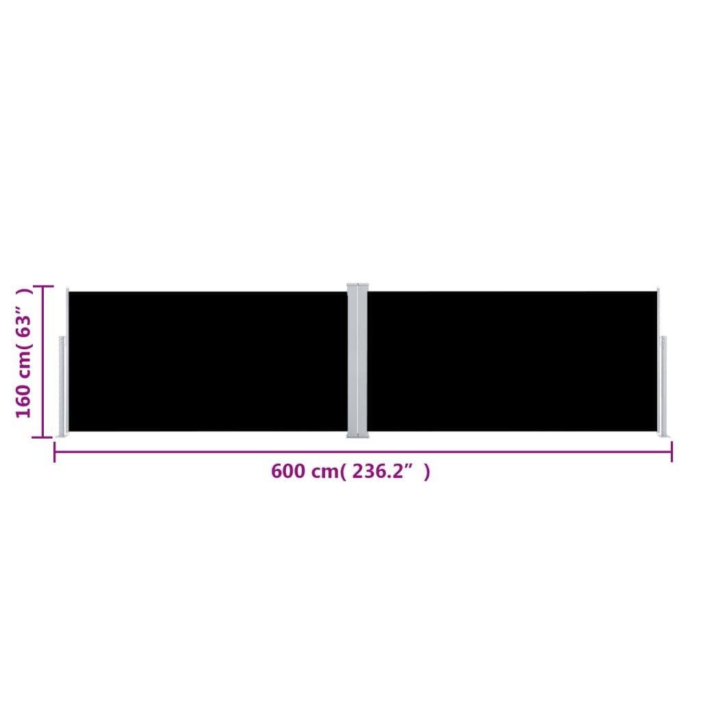 Zatahovací boční markýza černá 160 x 600 cm 317994