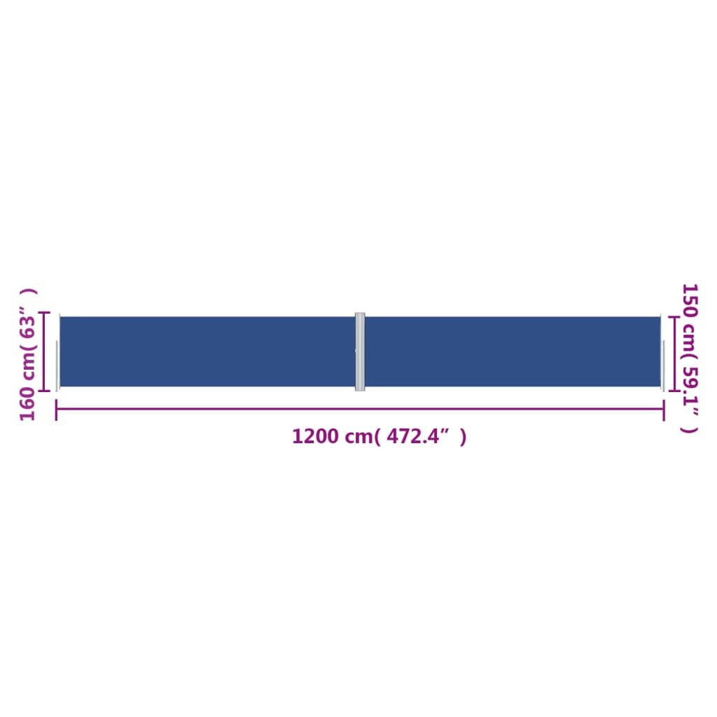 Zatahovací boční markýza modrá 160 x 1 200 cm 318070