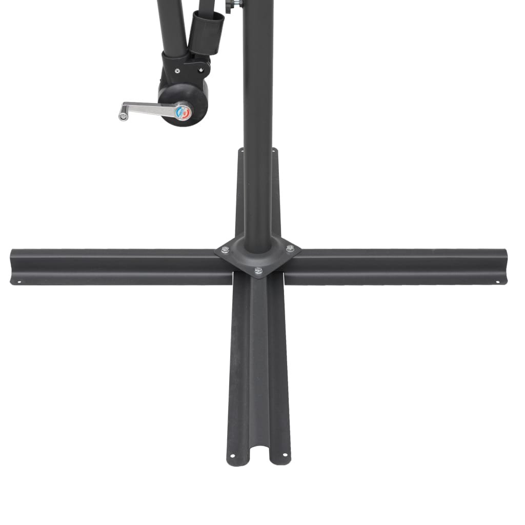 Stříška slunečníku je vyrobená z polyesterové tkaniny, která nebledne a nepropouští škodlivé UV záření, takže vám poskytne optimální ochranu před sluncem. Navíc se snadno čistí. Pevná křížová základna zvyšuje stabilitu slunečníku. Jeho exkluzivní konstrukce vám nabízí mimořádně velkou plochu k zablokování slunce. Silná hliníková tyč s 16 odolnými žebry zajišťuje, že se slunečník nehýbe a hodně toho vydrží. Zahradní slunečník disponuje klikovým mechanismem, což znamená, že se snadno otevírá i zavírá. Sestavení výrobku je jednoduché.