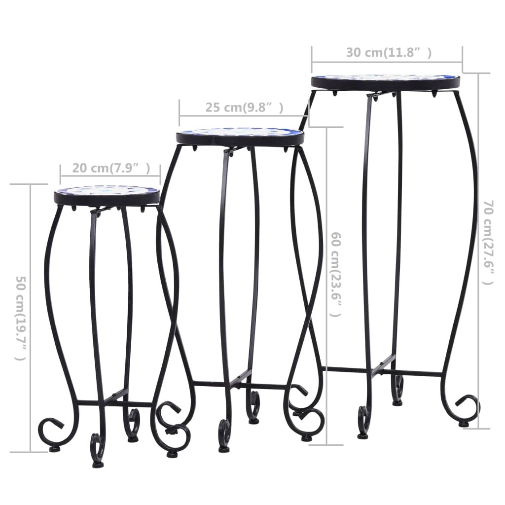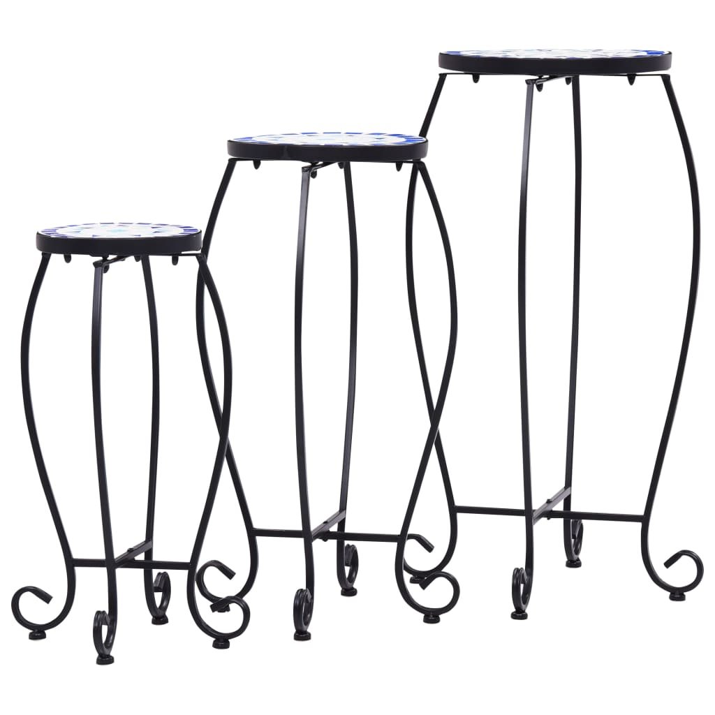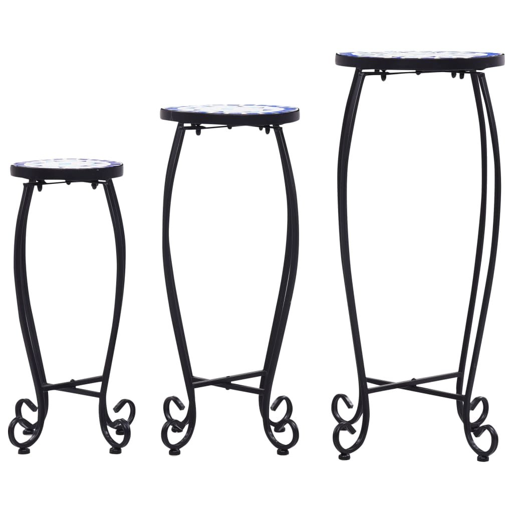 Mozaikové stolky 3 ks modré a bílé keramika 46702