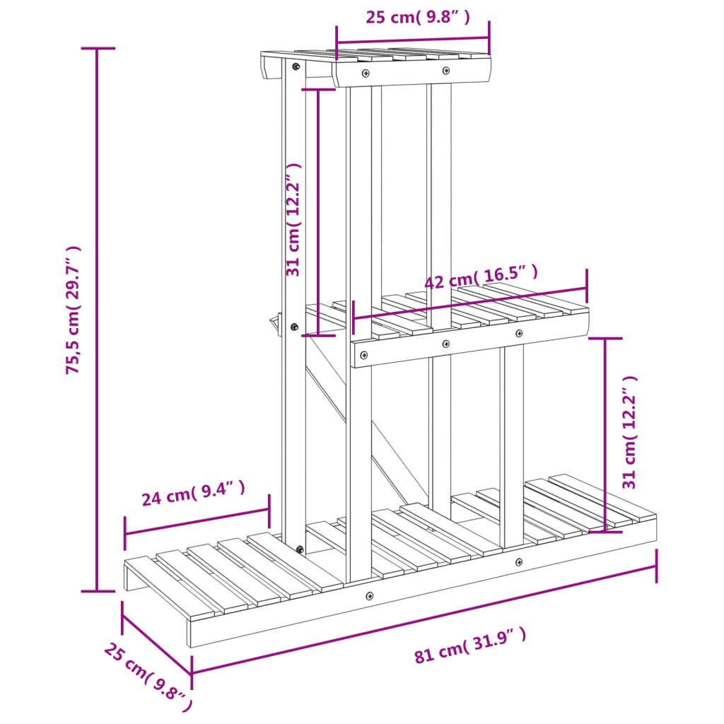 Stojan na květiny 81 x 25 x 75,5 cm masivní jedlové dřevo 362871