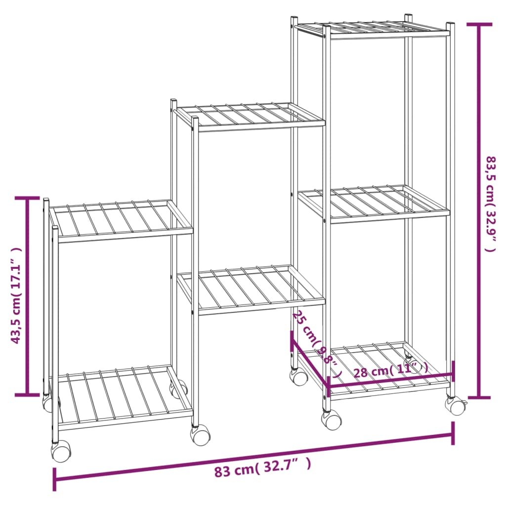 Stojan na květiny s kolečky 83 x 25 x 83,5 cm černý železo 343130