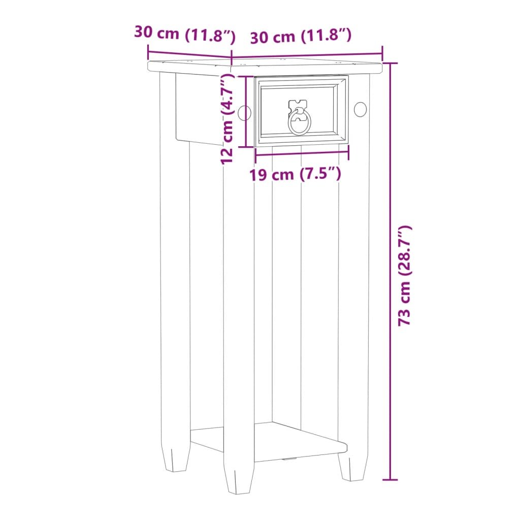 - Kovová úchytka: Stolek je vybavený kovovou úchytkou, která usnadňuje otevírání a zavírání zásuvky a zároveň jí dodává na kráse.