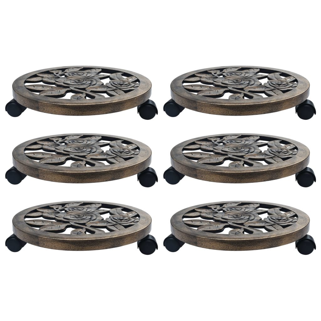 Vozíky pod květináč 6 ks bronzové 38 cm plast 48229