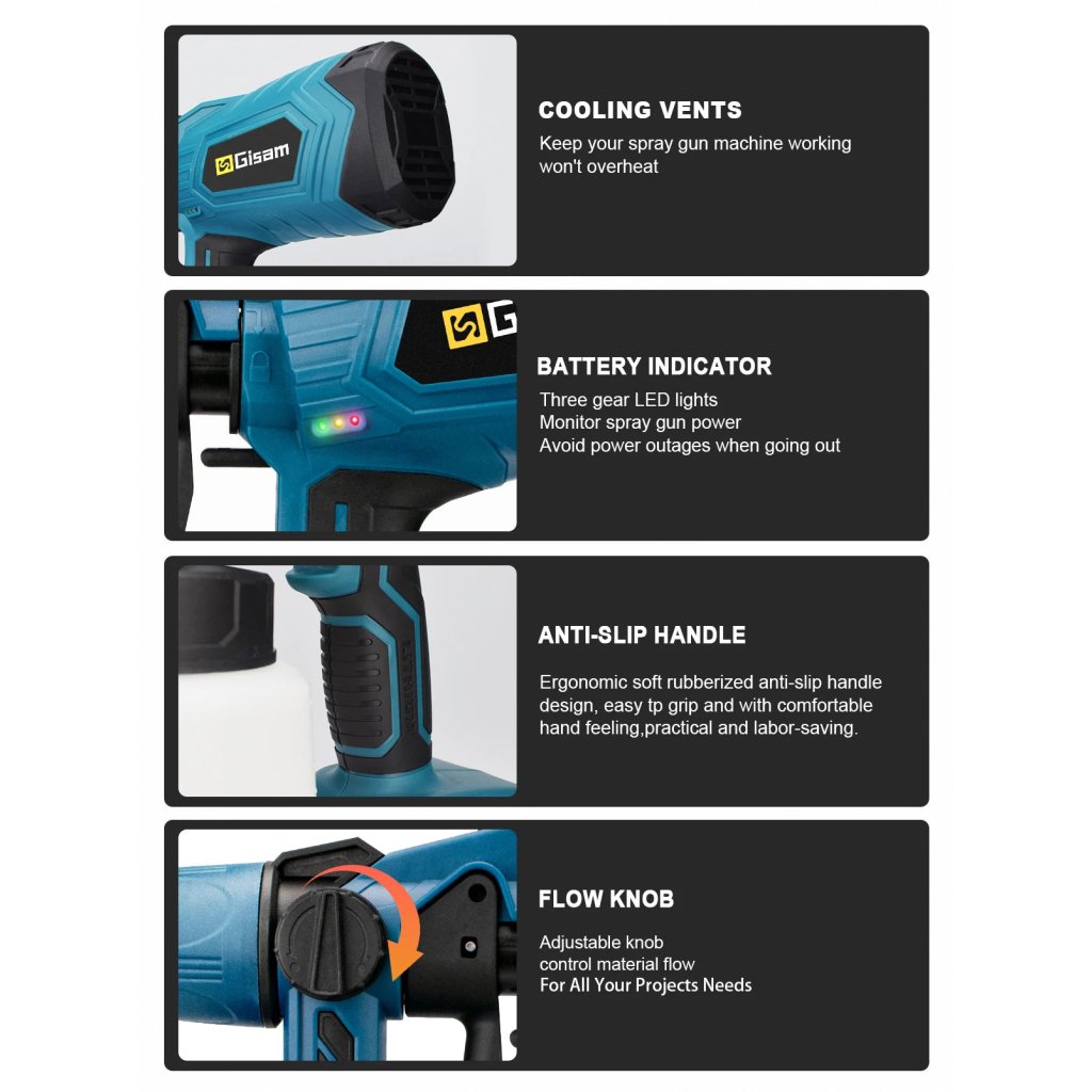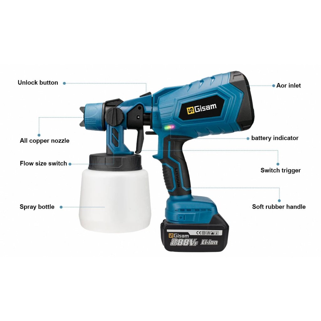 Gisam akumulátorová stříkací pistole 1000 ml + 2 baterie, modrá