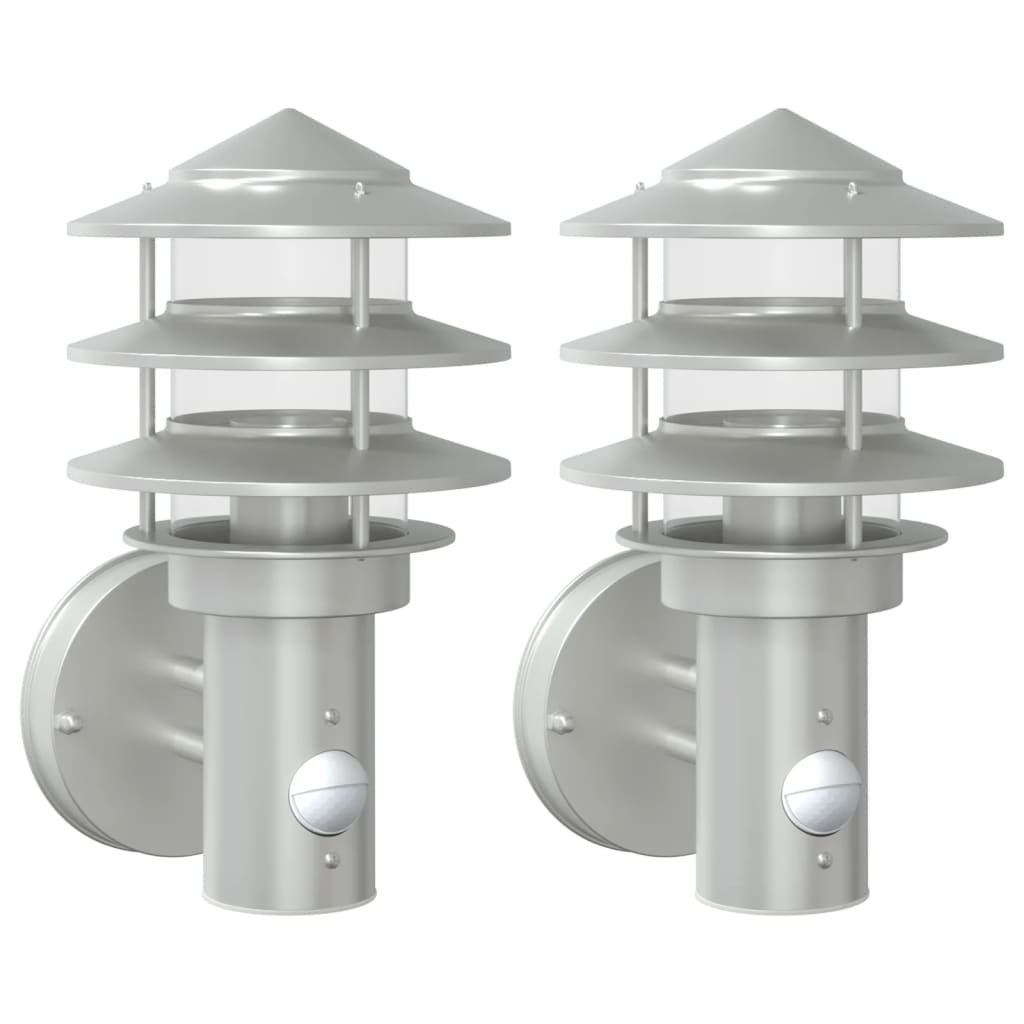 Venkovní nástěnná svítidla s čidlem 2 ks stříbrná nerezová ocel 4006231