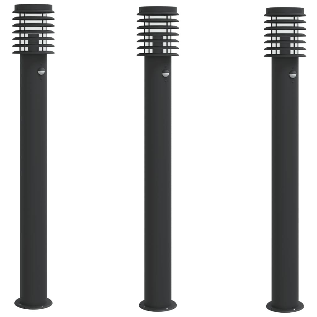 Venkovní stojací lampy s čidly 3 ks černé 110 cm nerezová ocel 4006372