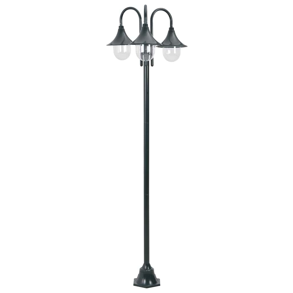 Zahradní sloupová lampa 3 ramena E27 220 cm hliník tmavě zelená 44216