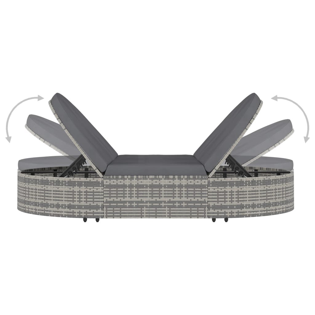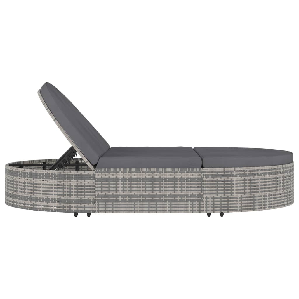 Dvojité zahradní lehátko s poduškami polyratan šedé 48127