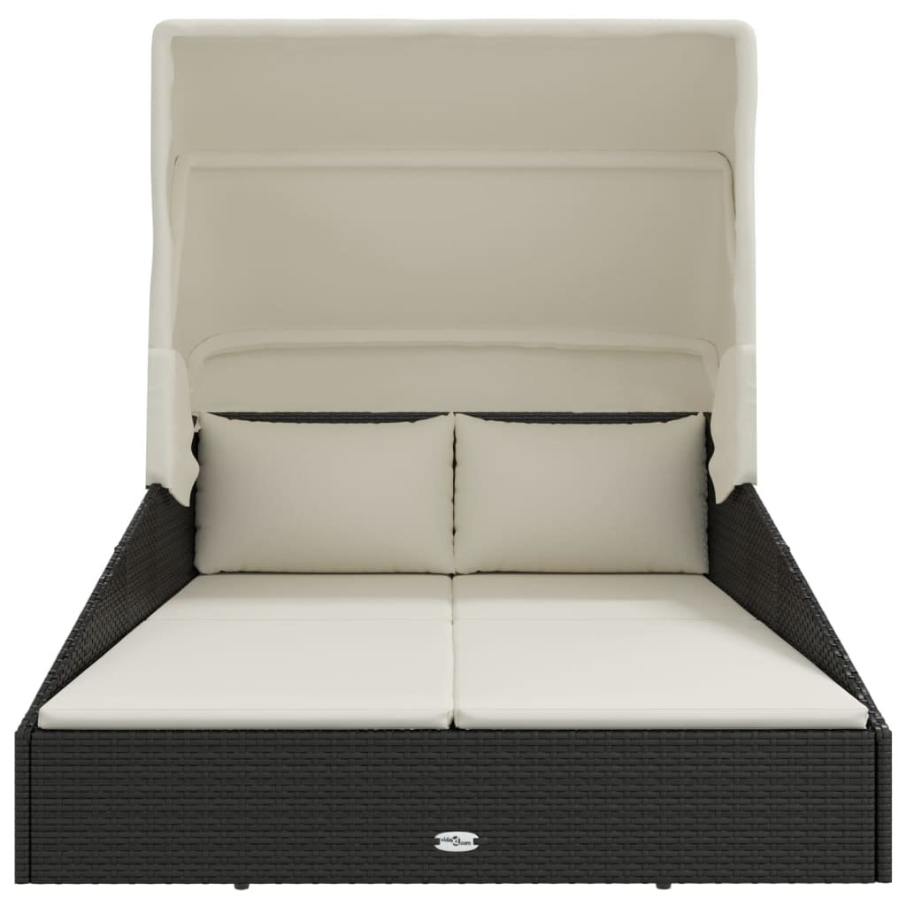 Lehátko se skládací střechou černé 200 x 114 x 128 cm polyratan 362273