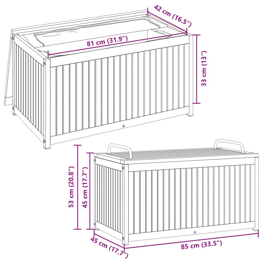 Zahradní box na podušky 85x45x45/53 cm masivní akácie a ocel 367608