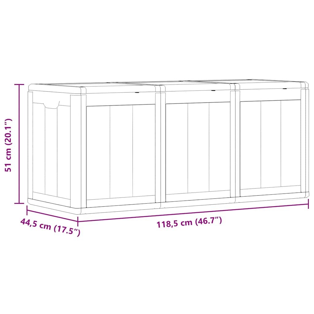 Zahradní úložný box 270 l šedý PP vzhled dřeva 151235