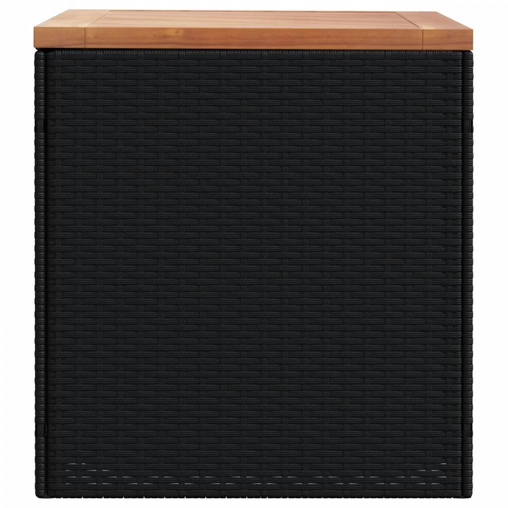 Zahradní úložný box černý 110x50x54 cm polyratan akáciové dřevo 365955