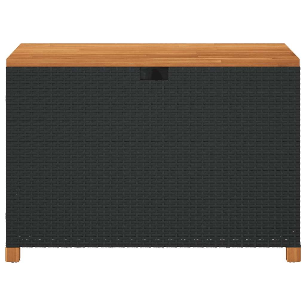 Zahradní úložný box černý 110x55x63 cm polyratan akáciové dřevo 366285