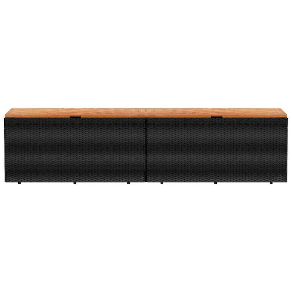 Zahradní úložný box černý 220x50x54 cm polyratan akáciové dřevo 365958