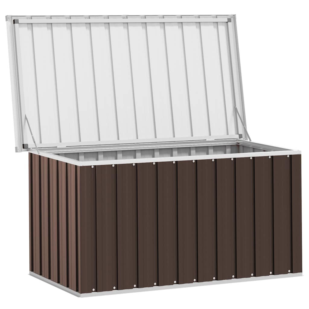 Prostorný zahradní box je vynikající pro uložení polštářů, přikrývek, dek a dalších předmětů. Díky své pevné konstrukci jej lze také použít jako bednu na nářadí. Úložný box je vyroben z robustní pozinkované oceli, vhodné pro vnitřní i venkovní použití. Zahradní úložný box má decentní, ale nadčasový design, který se hodí do každého interiéru.