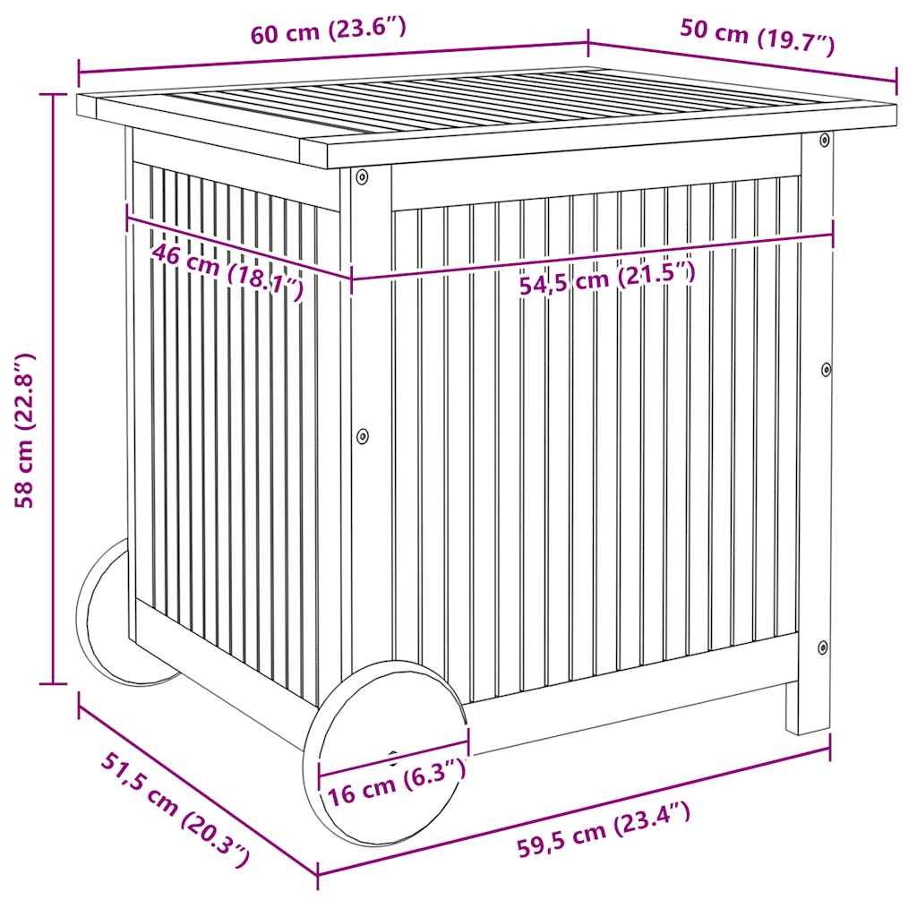 Zahradní úložný box s kolečky 60 x 50 x 58 cm masivní akácie 319710