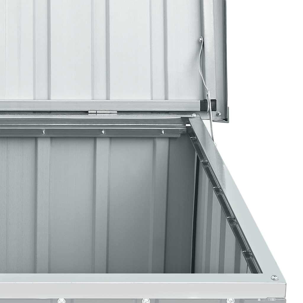 Prostorný zahradní box je vynikající pro uložení polštářů, přikrývek, dek a dalších předmětů. Díky své pevné konstrukci jej lze také použít jako bednu na nářadí. Úložný box je vyroben z robustní pozinkované oceli, vhodné pro vnitřní i venkovní použití. Zahradní úložný box má decentní, ale nadčasový design, který se hodí do každého interiéru.