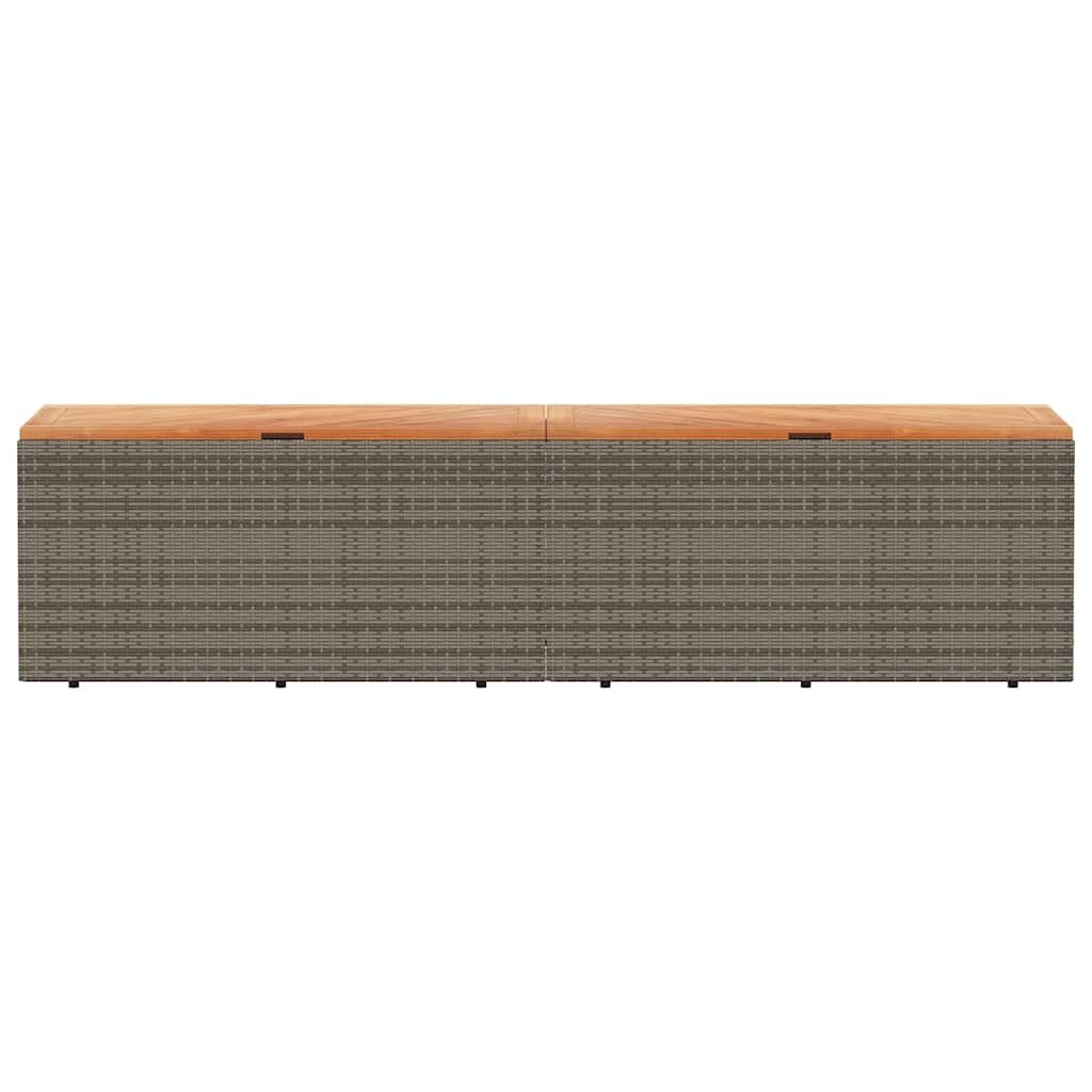 Zahradní úložný box šedý 220x50x54 cm polyratan akáciové dřevo 365959