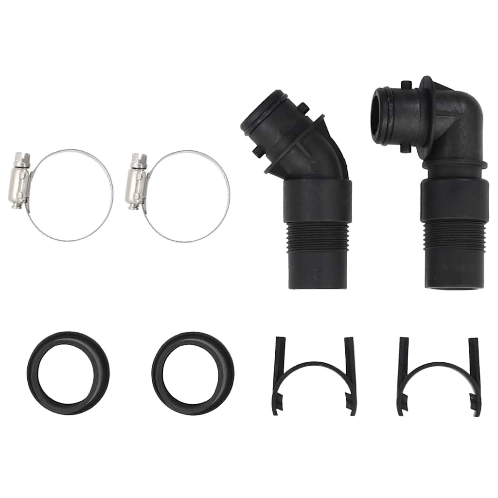 Balení obsahuje 1 ohřev bazénu, 1 hadici, 2 konektory, 2 svorky a 2 gumové kroužky.