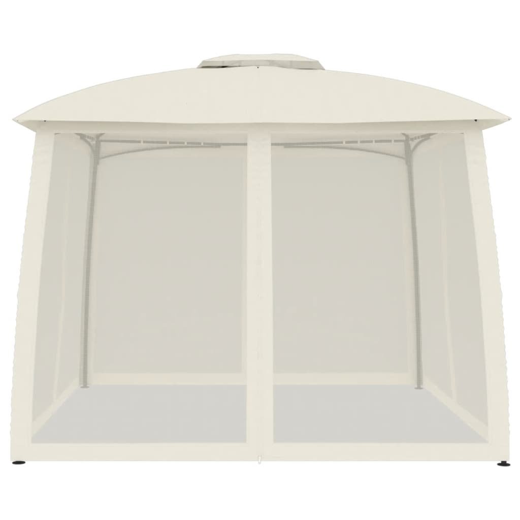 Altán s dvojitou střechou a stěnami krémový 2,93 x 2,93 m ocel 368448