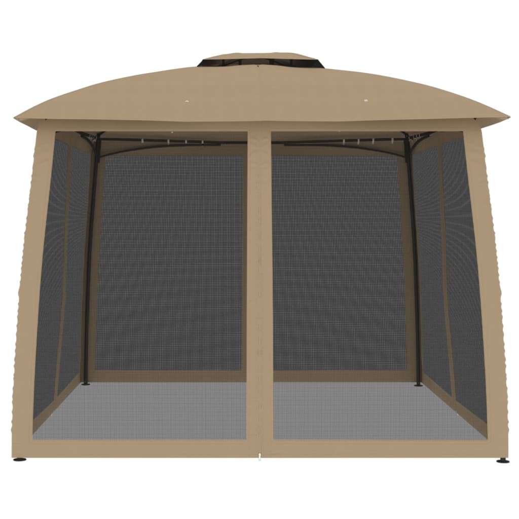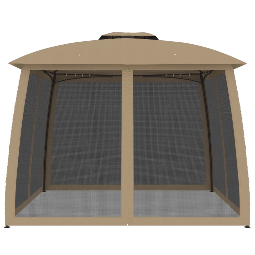 Altán s dvojitou střechou a stěnami taupe 2,93 x 2,93 m ocel 368450