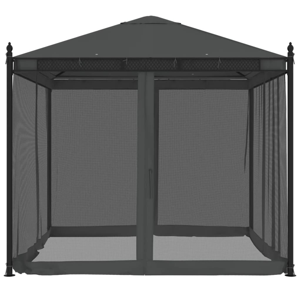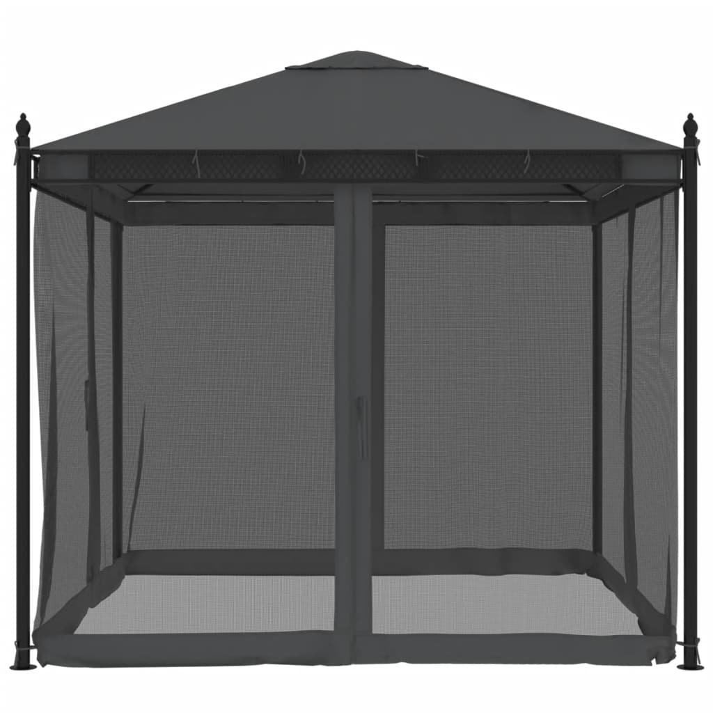 Altán se síťovanými stěnami antracitový 2,93 x 2,93 m ocel 368435
