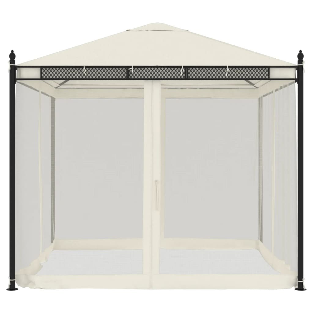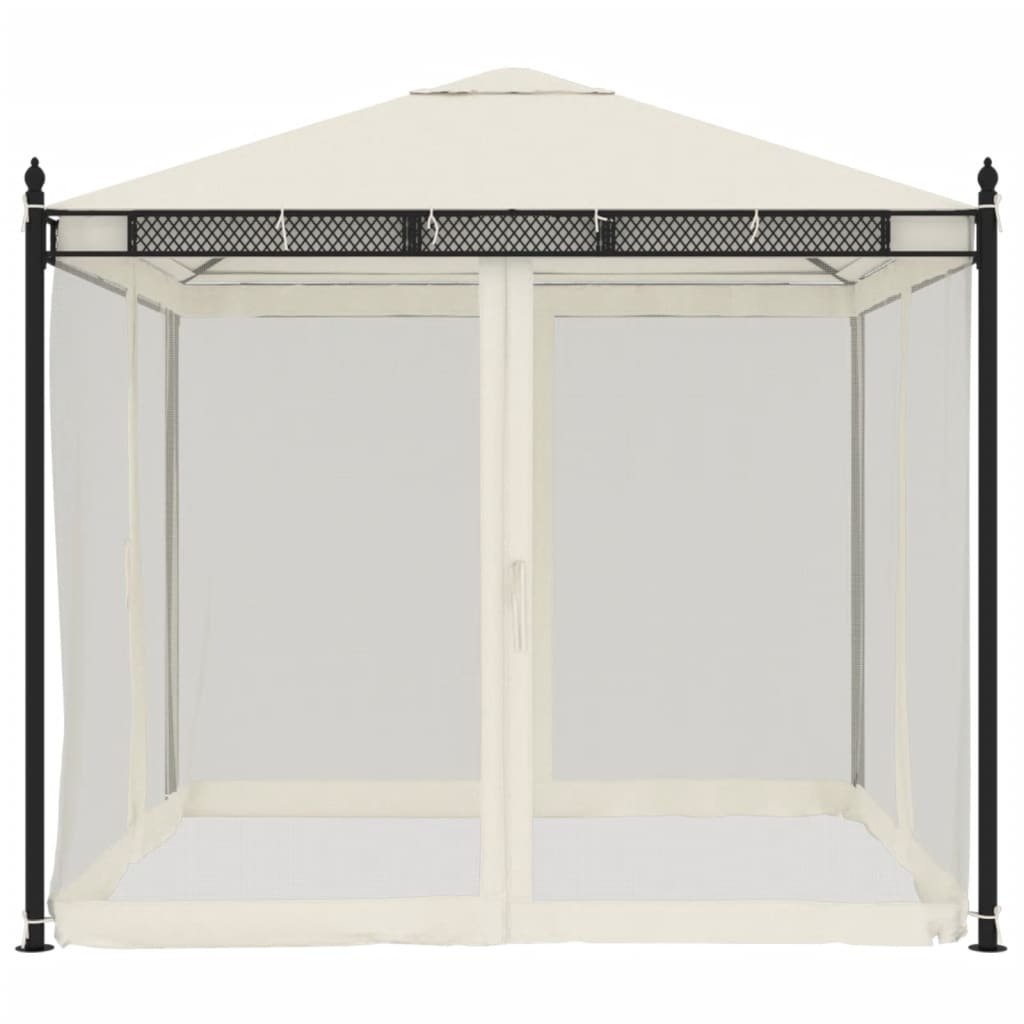 Altán se síťovanými stěnami krémový 2,93 x 2,93 m ocel 368434