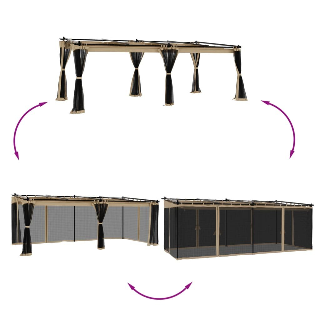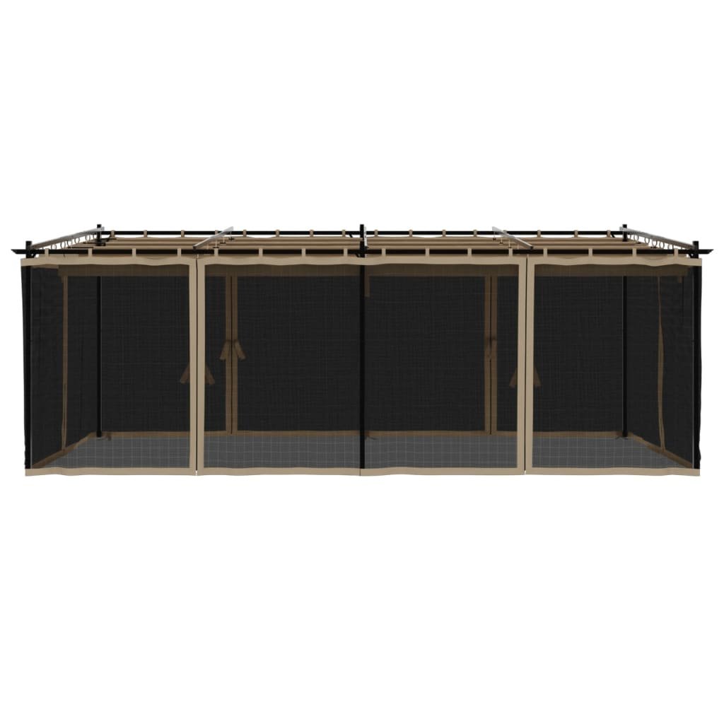 Altán se síťovanými stěnami taupe 6 x 3 m ocel 4003916