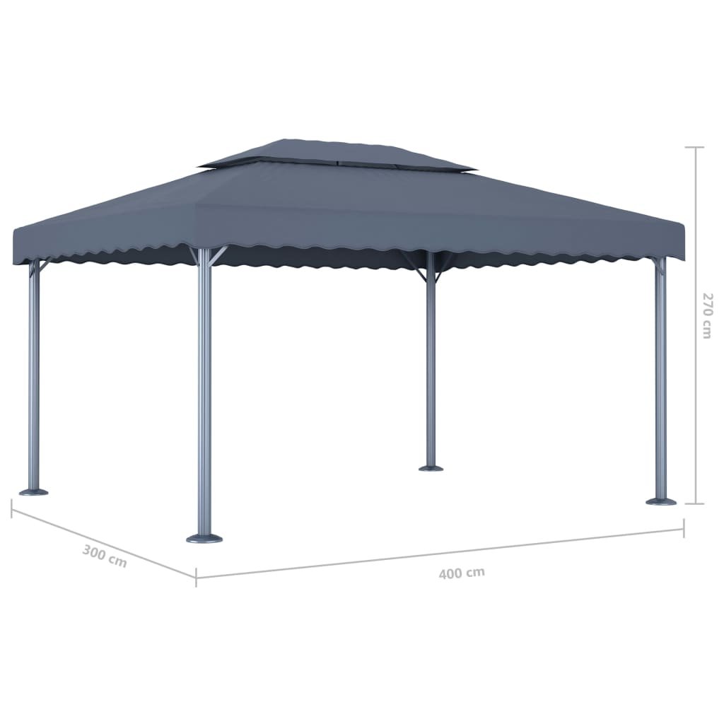Altán se světelnými LED řetězy 400 x 300 cm antracitový hliník 3070352