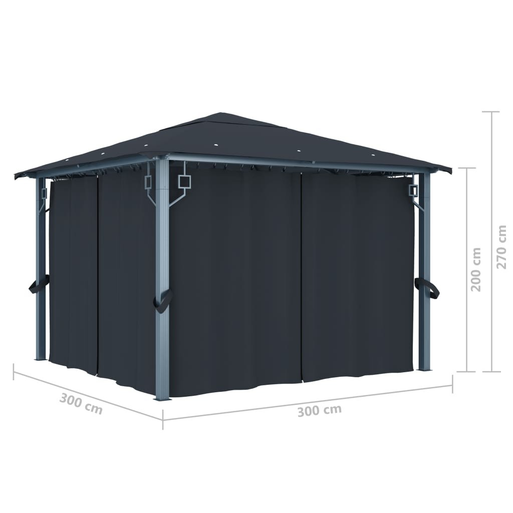 Altán se závěsy 300 x 300 cm antracitový hliník 48043