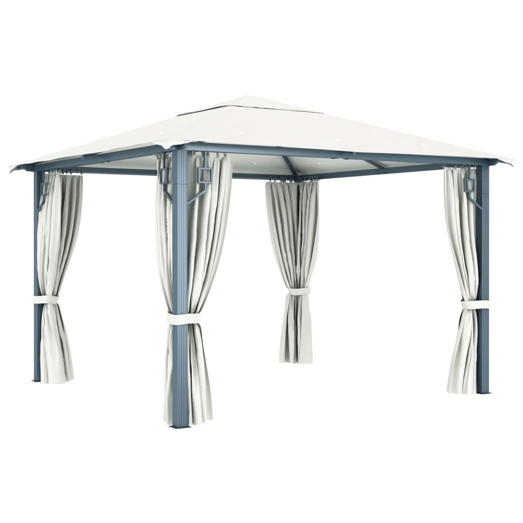 Altán se závěsy 300 x 300 cm krémový hliník 48042