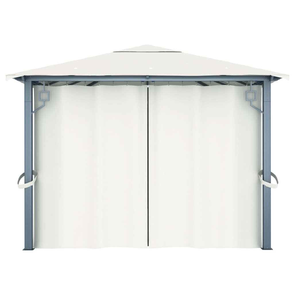 Altán se závěsy a světelnými LED řetězy 4 x 3 m krémový hliník 3070335