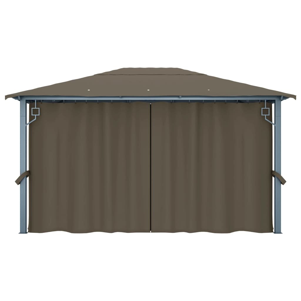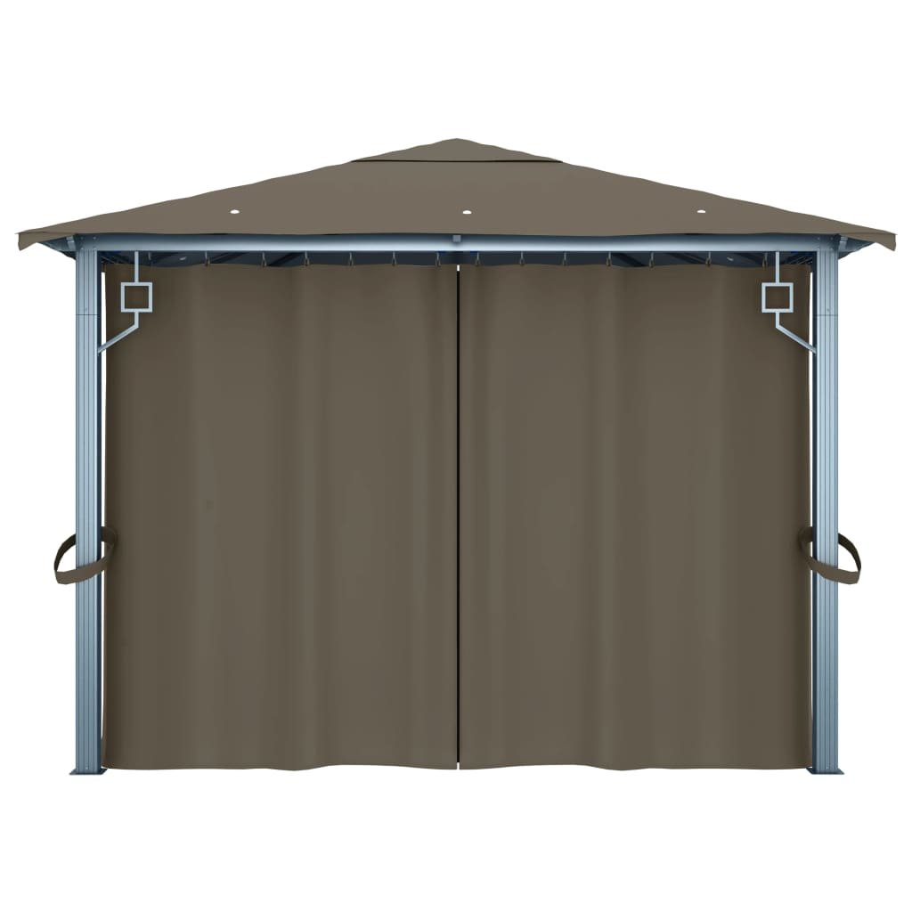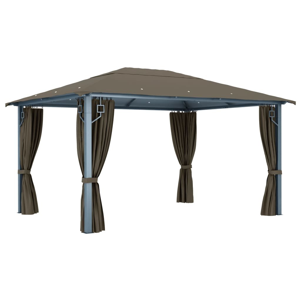 Altán se závěsy a světelnými LED řetězy 4 x 3 m taupe hliník 3070337