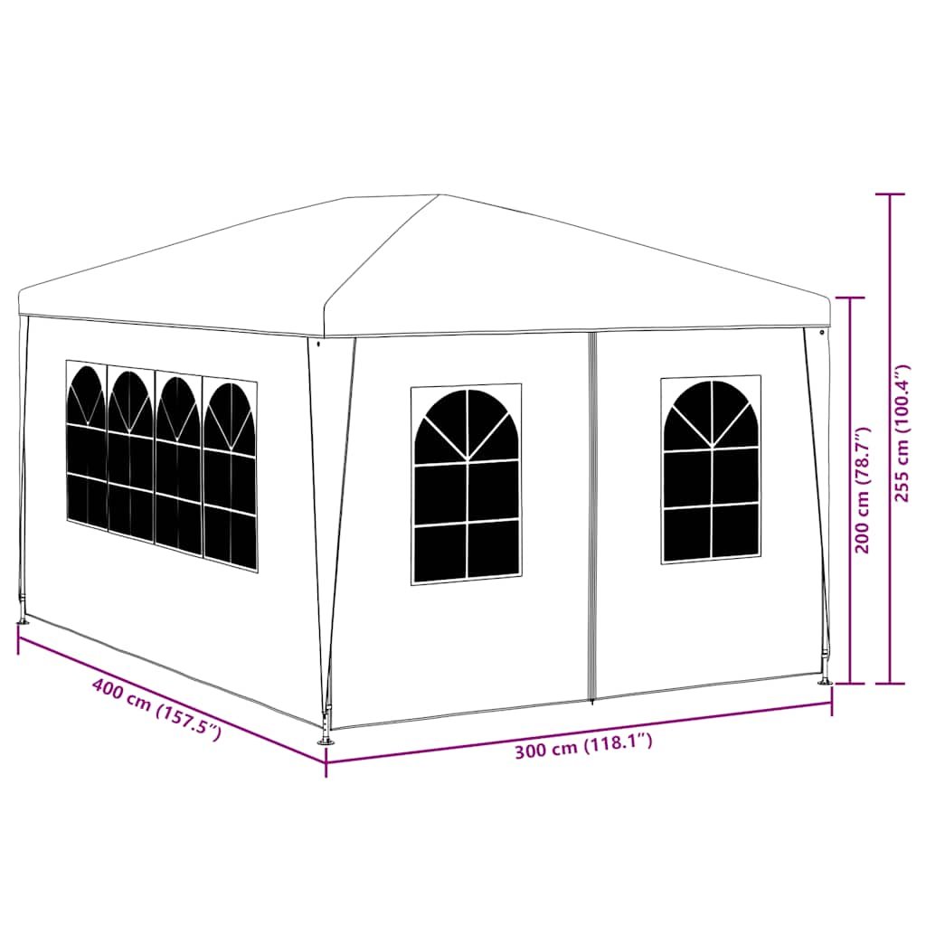 Zahradní stan je vyrobený z vodě- a UV záření odolného polyetylenu a je ideální pro venkovní použití. Rám je vyrobený z nerezové oceli, takže je venkovní přístřešek stabilní a odolný. Party stan je vybavený bočními panely s ozdobnými okny, jeden z nich s průchodem na zip pro snadný vstup. Zahradní altán se dá velmi jednoduše sestavit.
