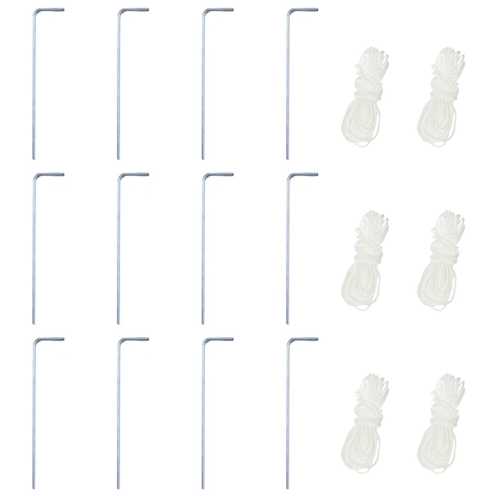 - Součástí balení jsou také vázací lanka a kolíky k upevnění do země