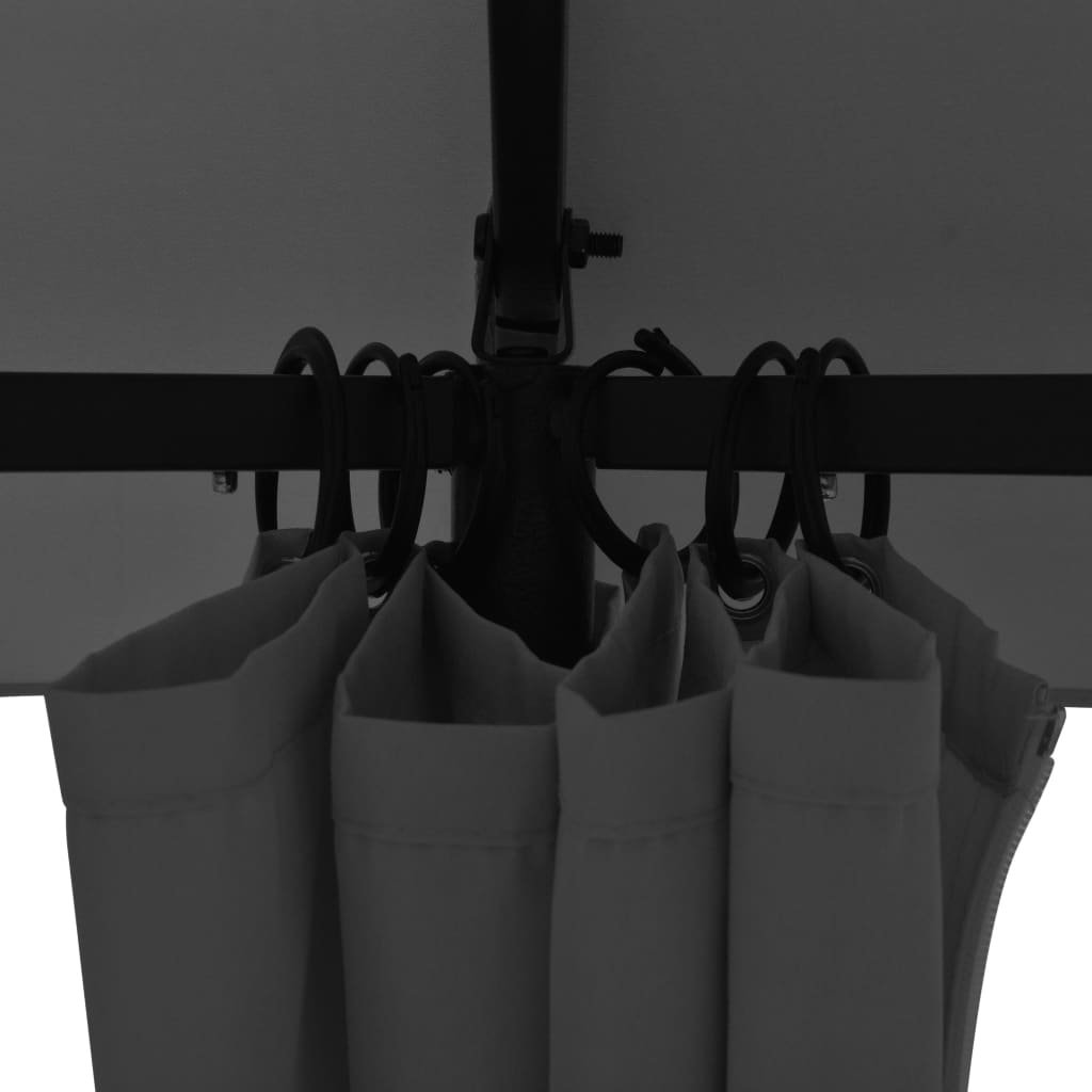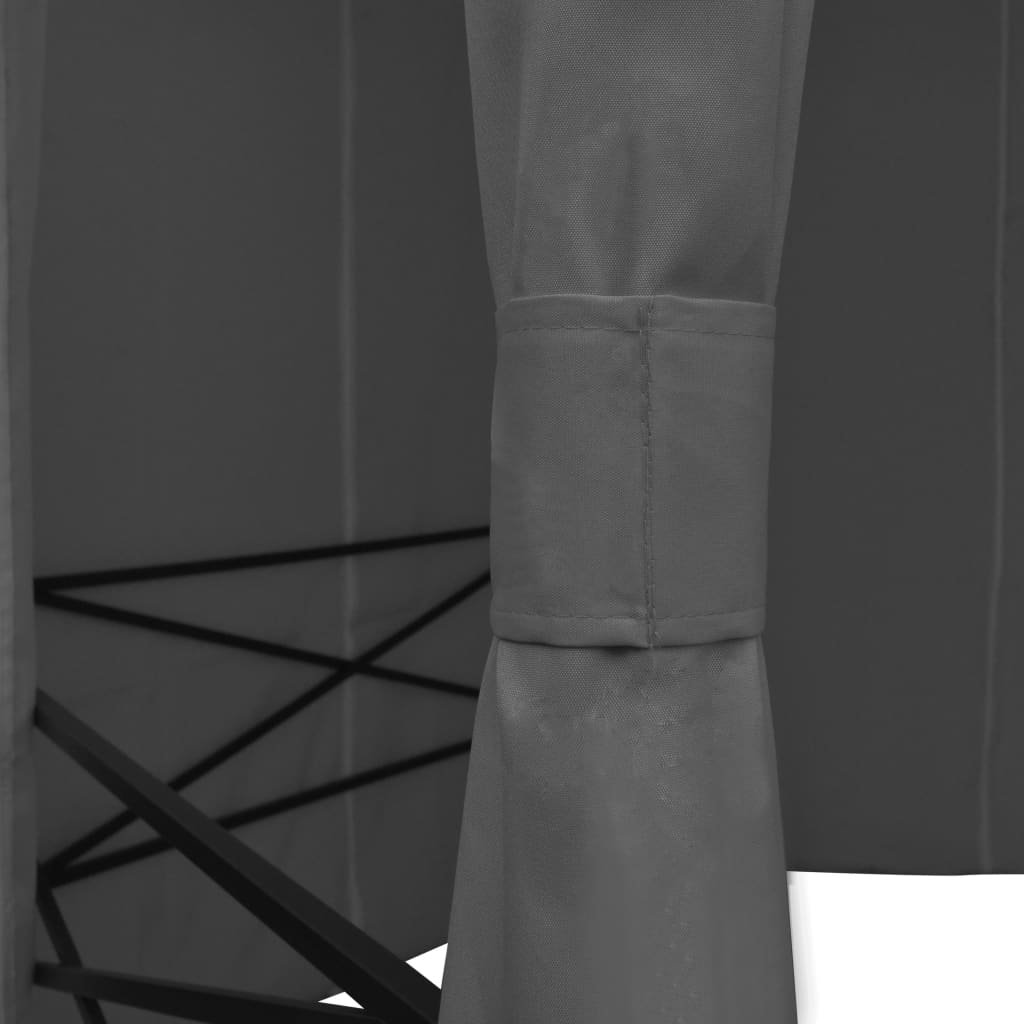 Střecha a závěsy altánu jsou vyrobené z polyesteru potaženého PA vrstvou, takže jsou nepromokavé. Bytelný rám je vyrobený z pevné oceli s práškovým nástřikem a altán je stabilní a nerezaví. Stylová stříška navíc zaujme svým dvoupatrovým provedením, které napomáhá proudění vzduchu. Polyesterové závěsy lze zatáhnout nebo je sepnout přiloženými stužkami a nechat je otevřené.