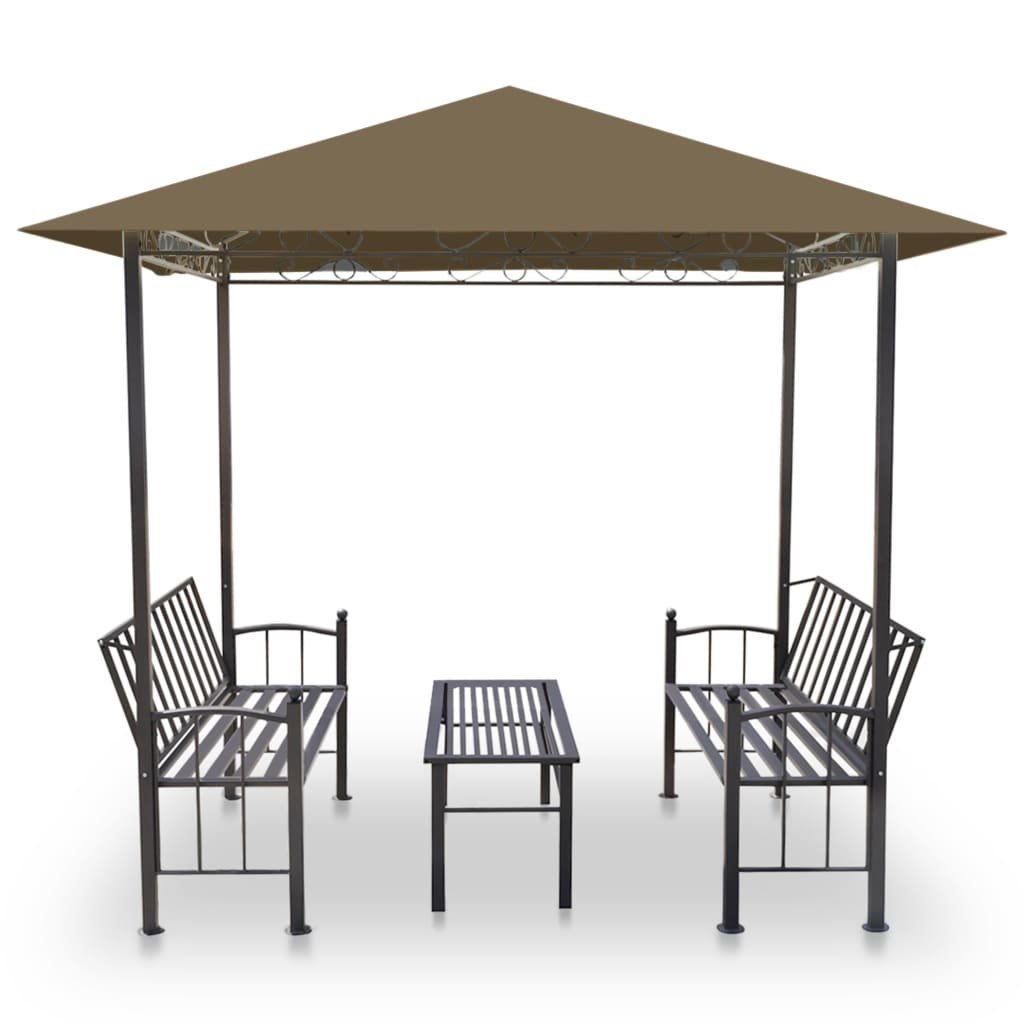 Zahradní altán + stůl a lavice 2,5x1,5x2,4 m taupe 180 g/m² 312222