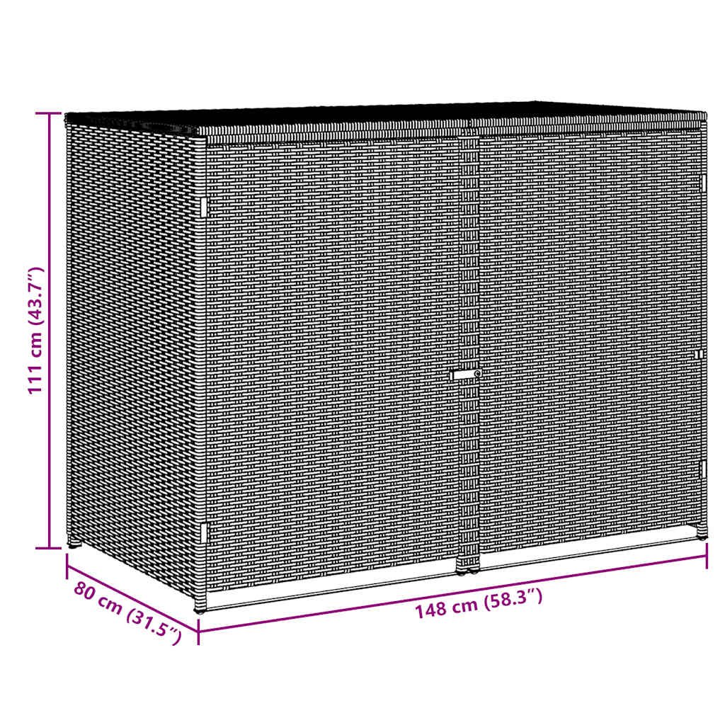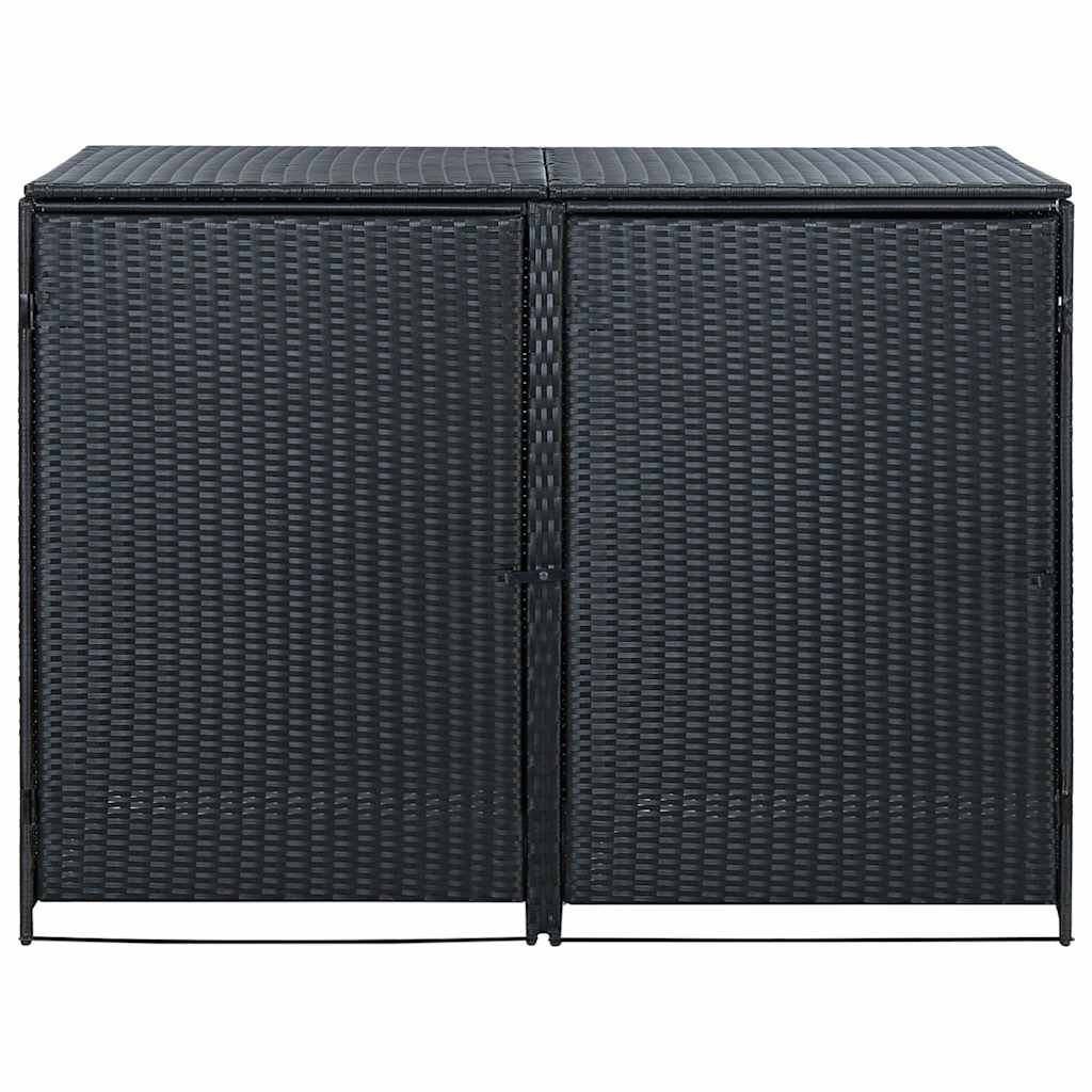 Dvojitý přístřešek na popelnice ratanový černý 148x80x111 cm 43887