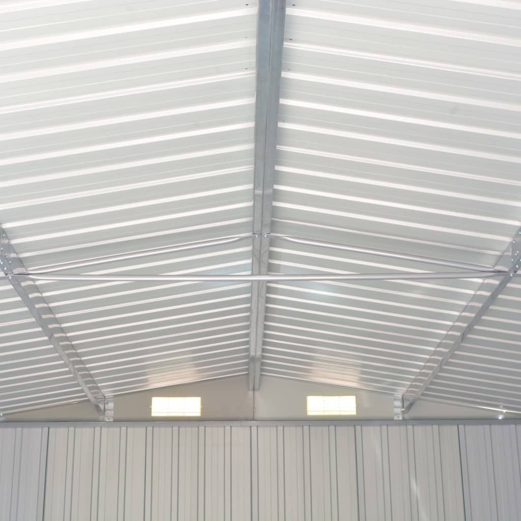 Tento úložný přístřešek má větrací otvory v přední i zadní části, které zajišťují vynikající ventilaci. Dvojité posuvné dveře v přední části umožňují snadný vstup a výstup. Konstrukce z pozinkované oceli spolu s práškovým nástřikem zaručují pevnost a odolnost kůlny na nářadí.