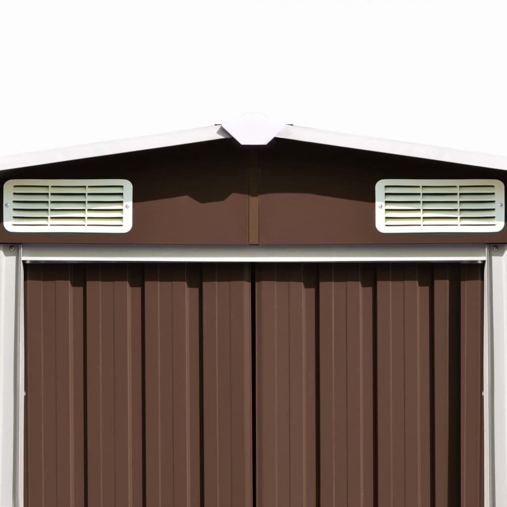 Tento úložný přístřešek má větrací otvory v přední i zadní části, které zajišťují vynikající ventilaci. Dvojité posuvné dveře v přední části umožňují snadný vstup a výstup. Konstrukce z pozinkované oceli spolu s práškovým nástřikem zaručují pevnost a odolnost kůlny na nářadí.