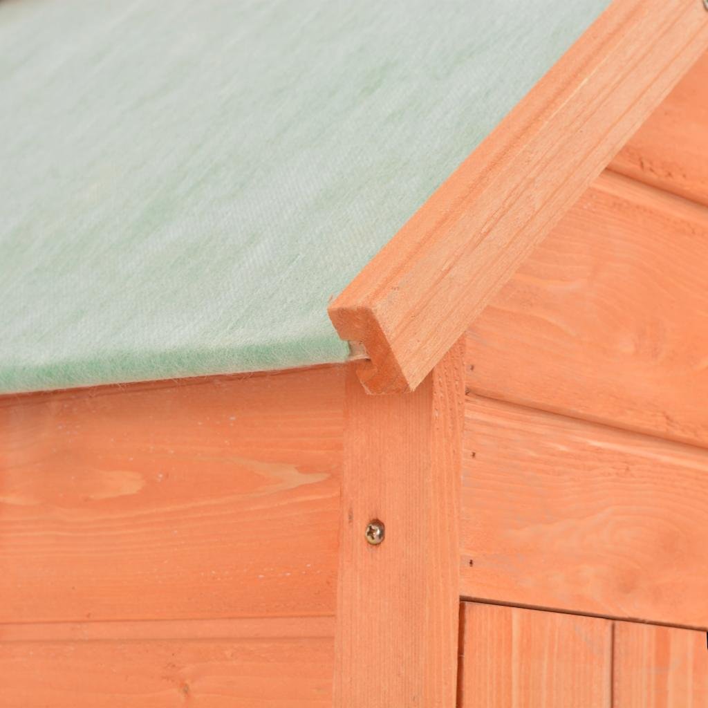 Kůlna je vyrobena ze dřeva a její střecha je z pevné, voděodolné tkaniny, která obsah přístřešku ochrání před vlhkostí. Její montáž je velmi snadná.