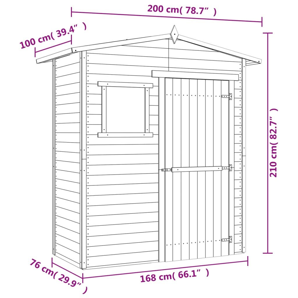 Tato kůlna je vyrobená z vysoce kvalitního impregnovaného dřeva, které má dlouhou životnost, je pevné a odolné vůči hnilobě. Dřevěná střecha je pokrytá podehtovaným papírem, takže je vodotěsná. Zahradní domek má také okýnko, které dovnitř propouští denní světlo. Dveře se dají snadno zavřít a zamknout dodaným zámkem. Sestavení zahradního je snadné.