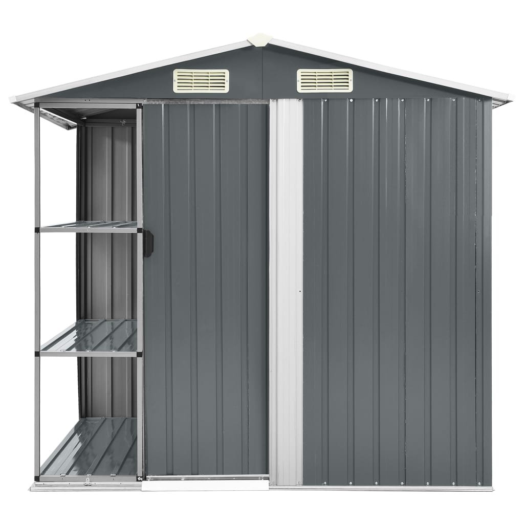 Zahradní domek s regálem šedý 205 x 130 x 183 cm železo 47103