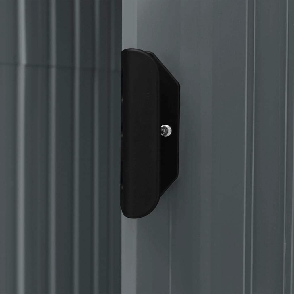 Tato úložná kůlna je vyrobená z pozinkovaného železa, takže je stabilní a snadno se udržuje. Zahradní domek má ventilační otvory vpředu i vzadu, což zajišťuje vynikající větrání. Jednokřídlé posuvné dveře s plastovou klikou na vnější straně umožňují snadné vcházení a vycházení.