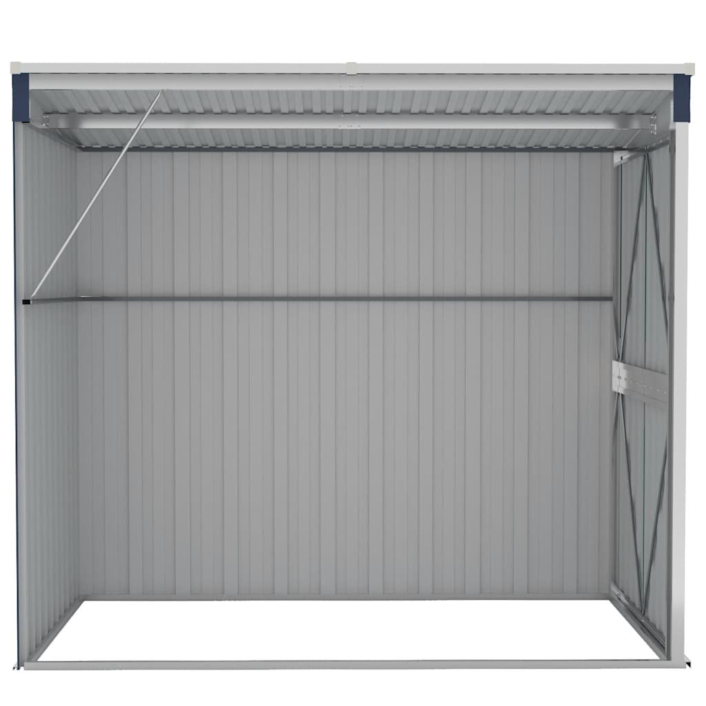Díky tomu, že je vyroben z pozinkované oceli a kovu, vyžaduje sklad minimální údržbu a je velmi odolný. Dvojité otevírací dveře v přední části umožňují snadný vstup a výstup. Plastová rukojeť s funkcí zámku zajišťuje bezpečnost vašich věcí. Navíc dešťová voda automaticky odtéká ze střechy díky šikmé konstrukci.